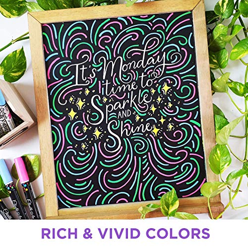 Chalkola vochtig af te vegen markers zijn levendig | stralend | zwaaiend – ze kunnen op de volgende oppervlakken worden gebruikt: weckglazen, keramiek, doe-het-zelfprojecten, voor het achterlaten van persoonlijke berichten op de spiegel en kalender, op krijtborden, tegels, metaal, plastic, glazen deuren, bedankkaarten, glitteraccessoires, menukaarten, in pubs, turnhallen, naai- en patchpatronen. stof, je kunt de afvoer datum op voedselcontainer en kratten