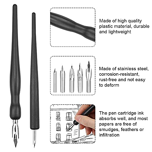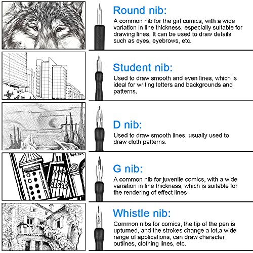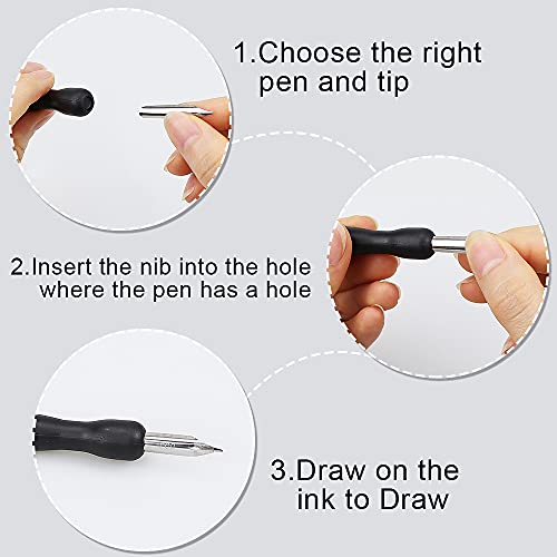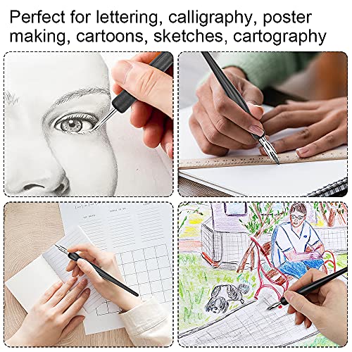 【Zachte greep】: deze set van veren en veerhouders is ideaal voor karikaturisten en kunstenaars voor fijne streken, lithografie, kruisarcering, alfabetten en uniforme rechte tekeningen
