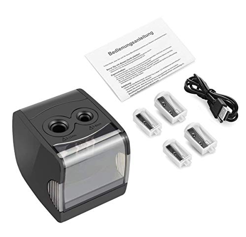 Specification: Qhui Elektrische puntenslijper, werkt op batterijen en USB-aansluiting, met 2 gaten en automatische functie, perfect…