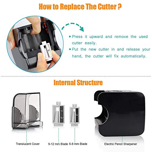 ➤【Automatische functie en veiligheidsdesign】 – de puntenslijper begint automatisch met het werk als je het potlood naar beneden drukt. Hij stopt als je het potlood eruit neemt. De ingang van de gaten voorkomt het binnendringen van vingers, je hoeft je dus geen zorgen te maken dat je kinderen zich verwonden wanneer de puntenslijper werkt.